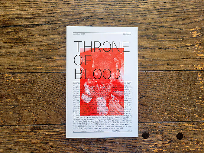 "Troyan's is a voracious language that gurgles itself, spits back up and swallows again only to become a new hungry hole, always phoenixing, always being born, never finished filling. In her 10000 rebirths we can finally see our own wants clearly: stained, wetdreamt, slit and sticky, but innocent in never having been informed why we are alive. This book is very dirty and very, very pure."